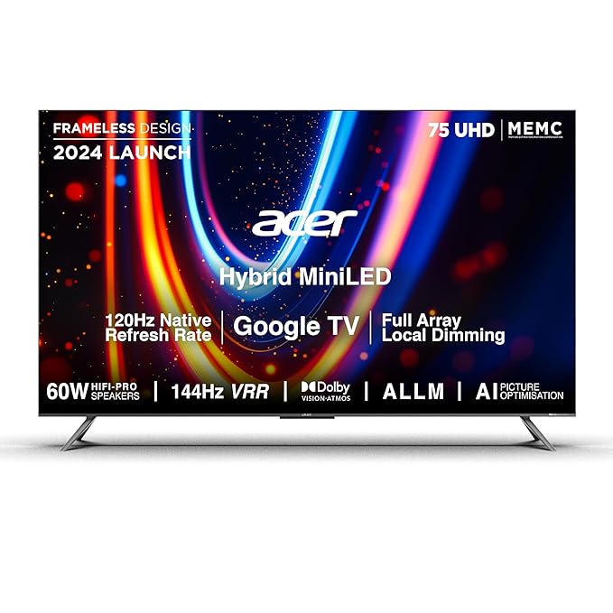 Acer 189 cm (75 inches) M Series 4K Ultra HD Smart QLED Mini LED Google TV AR75UDMGR2885AT (Black)
