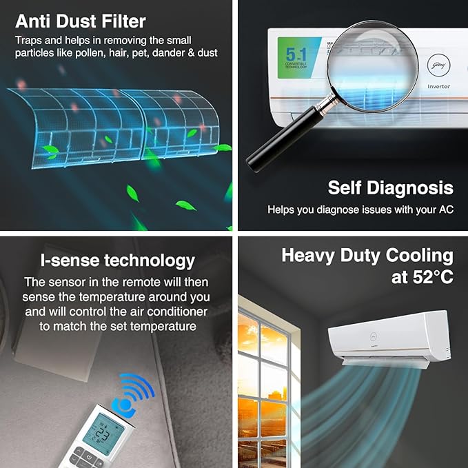| Special Feature | 5-in-1 convertible technology with inverter compressor, I Sense Technology,100% copper condenser, evaporator coils & connecting tube, R32 refrigerant, Remote Control, anti-freeze thermostat, Silent Operation, Anti Dust Filter |