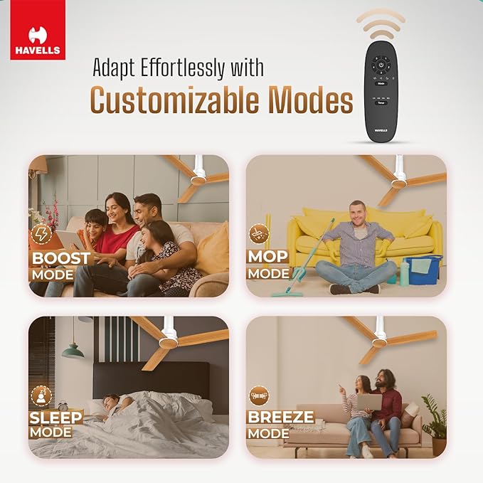 Havells 1200mm Elio Prime BLDC Ceiling Fan | Remote Controlled, High Air Delivery Fan | 5 Star Rated, Upto 60% Energy Saving, 2+1* Year Warranty | (Pack of 1, Pinewood Pearl White)