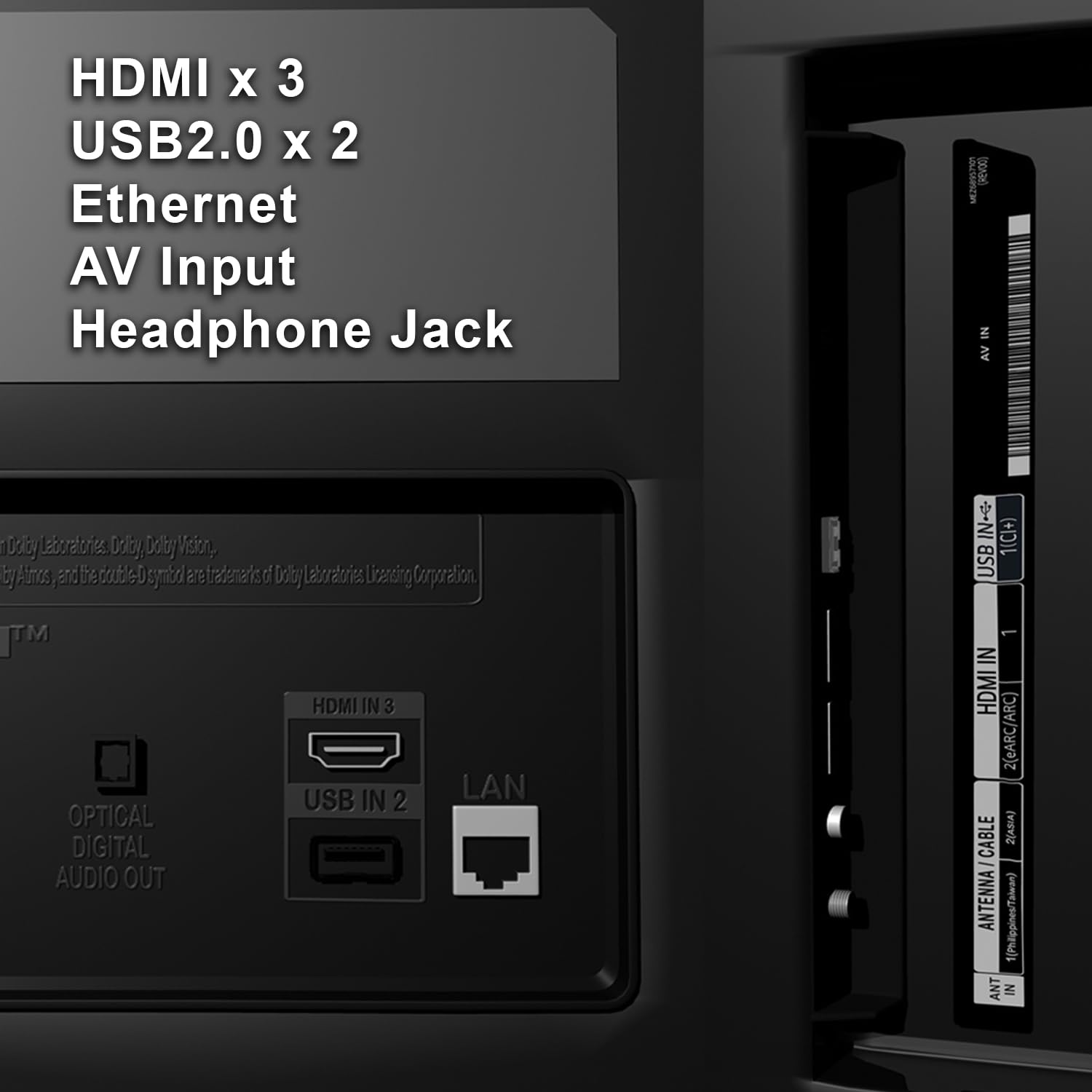 - Connectivity: Wi-Fi (Built-in) | 3 HDMI ports to connect set top box, Blu Ray players, gaming console | 2 USB ports to connect hard drives and other USB devices | eARC | Bluetooth 5.0 | Optical | Ethernet