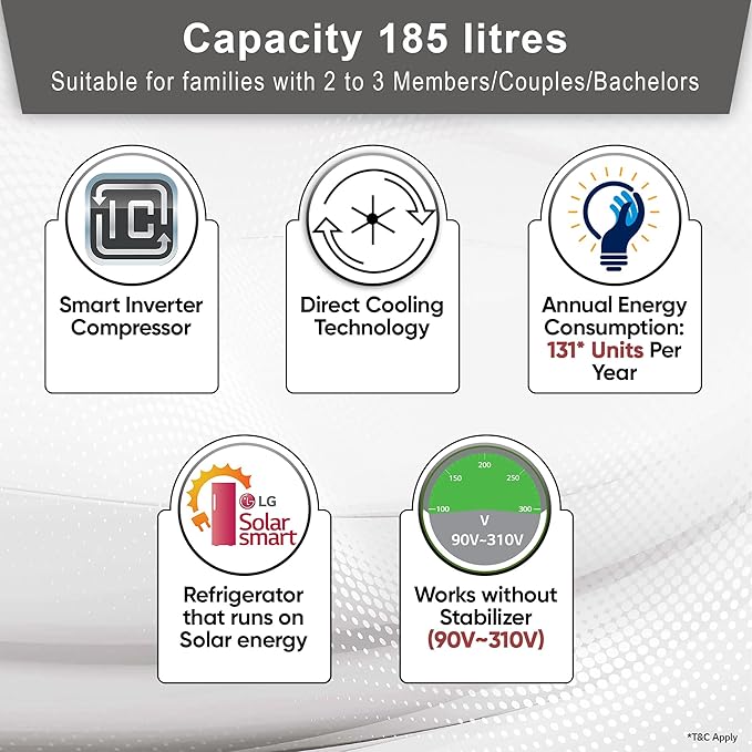 - Net capacity: 185 litres: Suitable for families with 2 to 3 members | freezer capacity: 16L | fresh food capacity: 169L