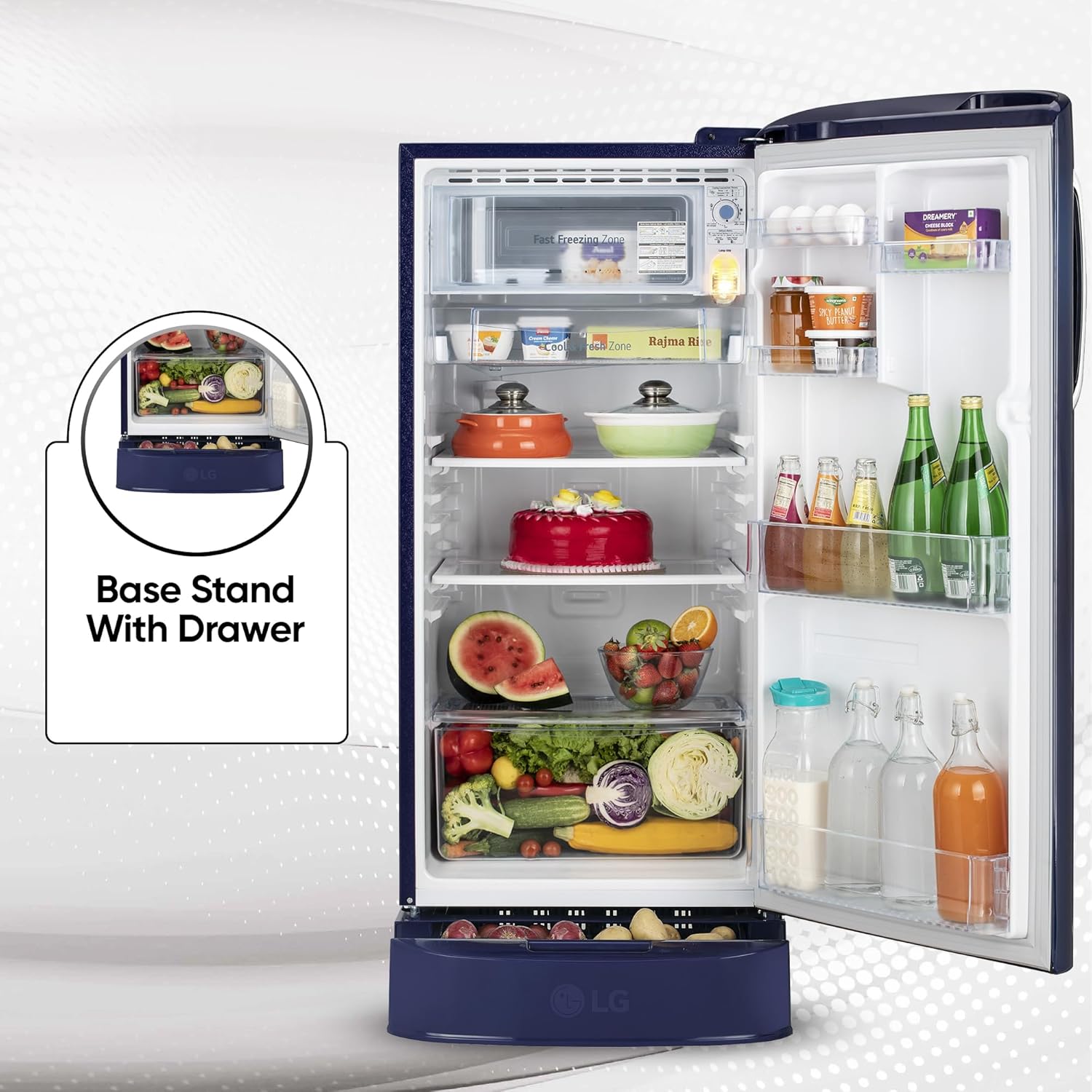 LG 185 L 5 Star Direct Cool Smart Inverter Compressor Single Door Refrigerator (GL-D201ABIU, Blue ILAN, Moist N Fresh, Auto Smart Connect with Base Stand Drawer)