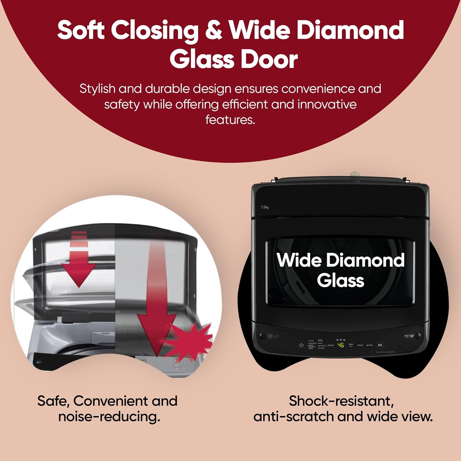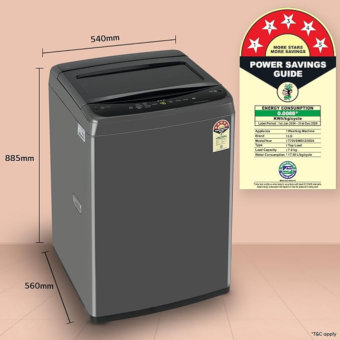 LG 7 Kg 5 Star Smart Inverter Technology Fully Automatic Top Load Washing Machine (2025 Model, T70VBMB1Z, Auto Prewash, Turbodrum, Stainless Steel drum, LED Display, Smart Diagnosis Middle Black)