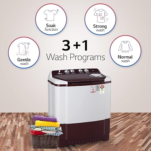 LG 8.5 kg 5 Star Semi-Automatic Top Load Washing Machine (P8530SRAZ, Burgundy, Roller Jet Pulsator)