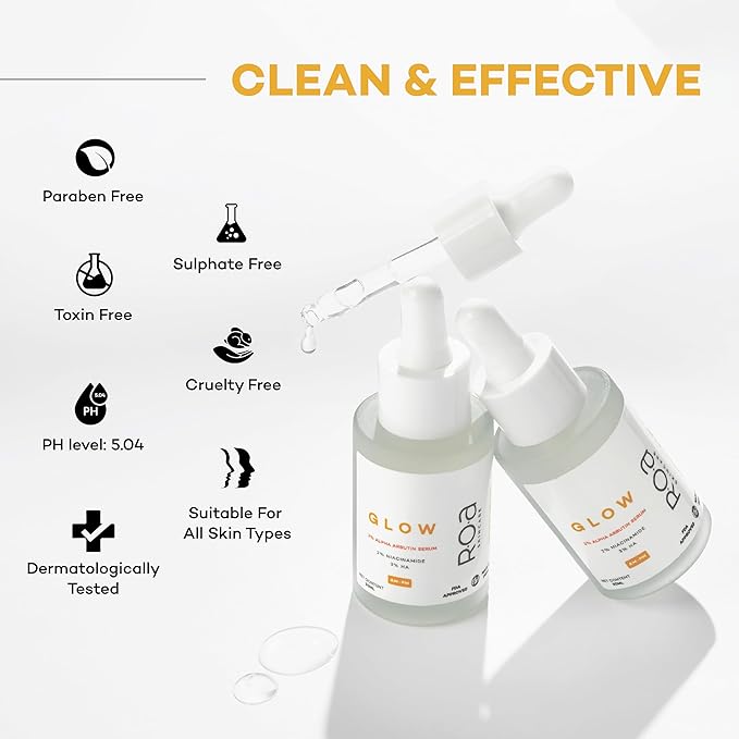 R.O.A Skincare GLOW face serum for Dark spots and open pores reduction with 2% Alpha Arbutin 2% Niacinamide and 3% Hyaluronic acid | Advanced Dark spot correcting glow serum for Men and women (30ml)