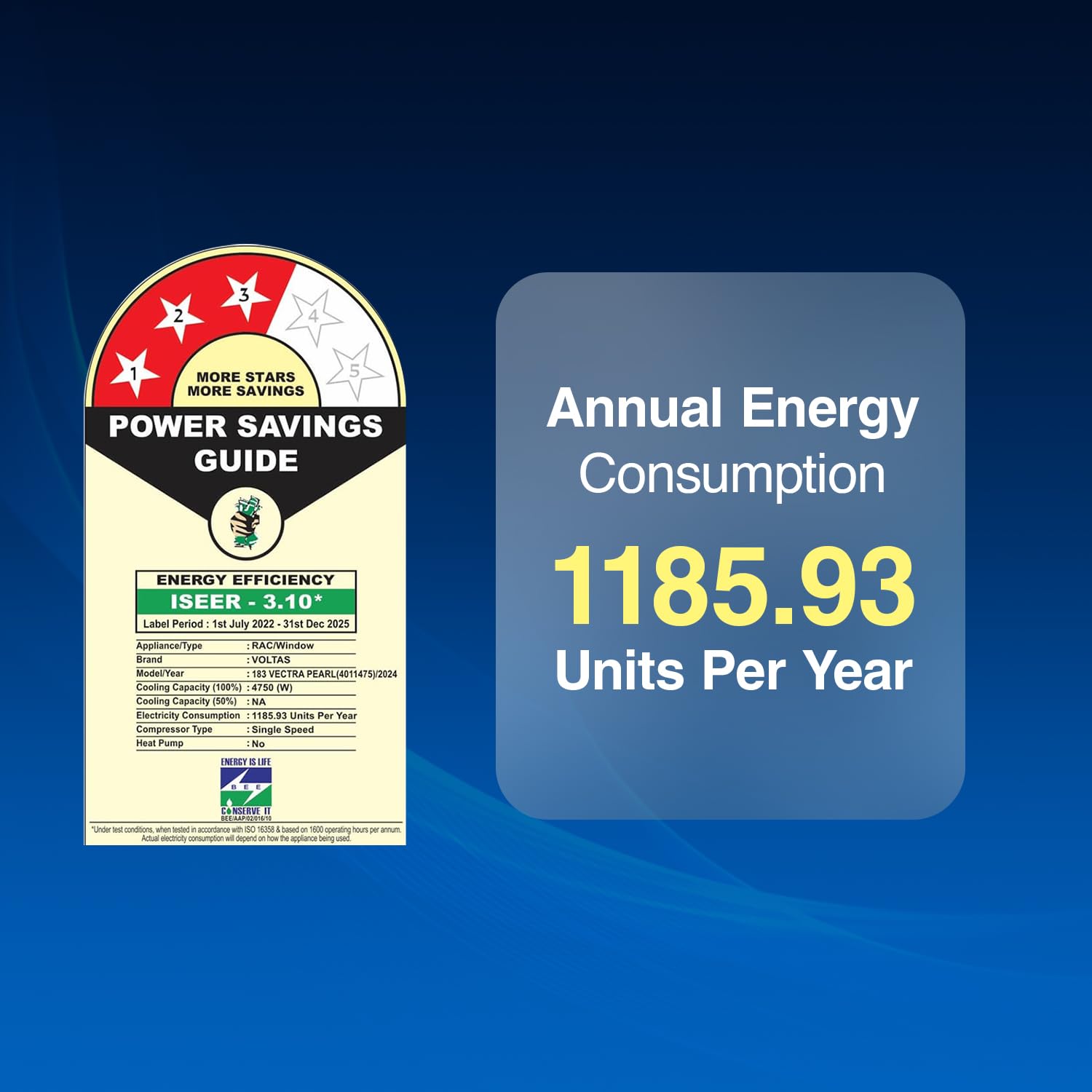 Voltas 1.5 Ton 3 Star, Turbo Mode Window AC (Copper Condenser, Anti-Rust Coating, Anti-Freeze Thermostat, AC 1.5T 183 Vectra Pearl, White)
